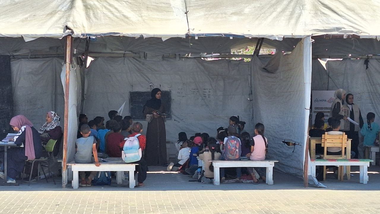 Sekolah yang sebelumnya sudah beroperasi diawal tahun ajaran 2025, dibakar oleh drone zionis israel sehingga proses pembelajaran berhenti total. Sehingga kami harus membangun kembali sekolah darurat disana.